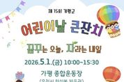 광장일보 주재영 기자 | 가평군은 오는 5월 1일 오전 10시 가평종합운동장에서 ‘제15회 가평군 어린이날 기념행사’를 개최한다. 가평군어린이집연합회와 가평군육아종합지원센터가 공동 주관하는 이번 축제는 기념행사와 공연, 놀이, 체험 부스 등 다채로운 프로그램으로 꾸며진다. 행사는 조종청소년오케스트라의 식전 공연으로 막을 올린다. 이어지는 본행사에서는 어린이 대표의 어린이 헌장 선언문 낭독과 군수 및 군의장의 기념사·축사, 공동 주관 기관장들의 개회 선언이 진행된다. 어린이날 유공자 및 모범어린이 6명에 대한 표창은 행사 이후인 5월 4일 가평군 월례조회 시 별도로 수여할 계획이다. 현장에는 가평경찰서, 교육지원청, 보건소 등 17개 기관과 단체가 참여해 총 26개의 체험 및 홍보 부스를 운영한다. 주요 행사는 △문화다양성 이해교육 △에코백 만들기 △장난감 수리 및 진단 등이며, 에어바운스와 페이스 페인팅 등 놀이 시설도 함께 운영한다. 가족 단위 방문객을 위한 맞춤형 프로그램도 풍성하다. 시간대별로 영유아 보물찾기, 초등학생 프리킥 챌린지를 비롯해 아빠 로켓 던지기와 엄마 림보 이벤트 등 온 가족이 참여할 수