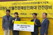 광장일보 이현나 기자 | 산불 발생 시 진화대원의 안전 확보를 위해 카카오페이(대표 신원근)와 (재)바보의나눔 은 9월 17일 강원특별자치도에 최신 산불진화용 안전모 등 안전 장비를 기증했다. 이번 기증은 (사)한국소방산업협회를 통해 진행됐으며, 카카오페이와 시민 모금을 통해 조성된 약 1억 1천만 원으로 최신 산불진화용 안전모 등 4종 210세트를 구입해 강원특별자치도에 전달했다. 강원특별자치도는 최근 가뭄으로 산불 발생 위험이 높고 각종 산불에 신속하게 대응해 온 강릉시에 전달할 예정이다. 행사에 참석한 카카오페이 이윤근 이에스지(ESG)협의체장은 “산불 현장 최일선에서 헌신하는 산불전문예방진화대분들이 부족한 안정장비로 겪는 어려움을 덜어드릴 수 있게 되어 뜻깊게 생각한다“며, “앞으로도 안전하고 건강한 사회를 위해 힘쓰는 분들을 위해 이로운 가치를 만들어가는 활동을 꾸준히 이어가겠다“고 말했다. 한편 강원특별자치도 산불방지센터 관계자는 “이번 산불 안전 장비 기증을 통해 진화대원의 안전 확보는 물론 산불 대응 역량 강화에도 큰 도움이 될 것으로 기대한다”며, “카카오페이를 비롯한 관계자분들께