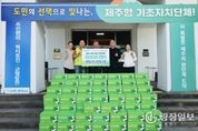 광장일보 주재영 기자 | (재)기빙플러스(상임대표 남궁규)와 ㈜락앤락(대표 이영상)은 9월 17일 제주시청을 방문해 4천만 원 상당의 후원물품을 기탁하고, 구좌읍 종달리 해변 정화활동을 펼쳤다. 이번 후원은 락앤락의 환경정화 캠페인 ‘Love For Jeju’를 계기로 진행하게 됐으며, 관내 한부모가족을 비롯한 취약계층에 실질적인 도움을 제공하고 지역사회에 기여하고자 마련됐다. 기탁식은 (재)기빙플러스 및 ㈜락앤락 임직원 총 23명이 참석한 가운데 진행됐으며, 이날 기탁된 기빙플러스의 생필품 꾸러미 ‘자상 한 상자’ 100개는 관내 저소득 가구에 전달될 예정이다. ‘자상 한 상자’는 건강음료, 화장품, 위생용품, 생활잡화 등으로 구성돼 생활 안정에 실질적인 도움을 줄 것으로 기대된다. 기탁식에 이어 기빙플러스·락앤락 임직원과 제주시 복지가족국·청정환경국·구좌읍 등 직원 50여 명은 ‘제주 동행 플로깅’ 캠페인에 참여해 구좌읍 종달리 해변에서 쓰레기 수거 봉사활동을 함께 하며 자원순환을 실천했다. 특히 기빙플러스는 기업들로부터 기부받은 재고상품을 자원으로 순환하며 지역사회와 친환경 활동