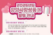 광장일보 이현나 기자 | 양양군은 2026년부터 기존 종이형으로만 발행하던 ‘양양사랑상품권’을 카드형까지 확대 발행해 지역 내 소비 촉진과 자금의 선순환 구조를 한층 강화할 계획이라고 17일 밝혔다. 양양사랑상품권은 지난 9월 1일 발행을 시작한 이후 체육시설과 휴양림 시설을 중심으로 활용되며, 양양군을 방문하는 외지 관광객들의 소비를 촉진하는 효과를 보이고 있다. 군은 이러한 성과를 바탕으로 내년 1월 2일부터 종이형 양양사랑상품권 5천 원권과 1만 원권을 일반에 판매하고, 이어 1월 19일부터는 카드형 상품권까지 발행해 주민과 방문객 모두가 보다 편리하게 이용할 수 있도록 할 방침이다. 양양사랑상품권은 월 40만 원 한도 내에서 구입할 수 있으며, 구매 시 10% 할인 혜택을 받을 수 있다. 종이상품권은 농협을 비롯한 관내 12개 금융기관에서 구입 가능하고, 카드상품권은 지역 내 농협 및 한국조폐공사 지역상품권 앱 ‘Chak(착)’을 통해 손쉽게 신청·충전할 수 있다. 현재 양양사랑상품권 가맹점 수는 972개소에 이르며, 군은 앞으로도 지속적인 가맹점 확대를 통해 이용 편의를 높이고, 지역 내