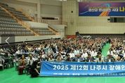 광장일보 주재영 기자 | 전라남도 나주시가 장애인과 비장애인이 함께 어울리며 소통하는 화합의 장 ‘제12회 나주시 장애인 한마당 큰잔치’를 성황리에 개최했다. 나주시는 최근 종합스포츠파크 다목적체육관에서 나주장애인연합회(회장 송종운) 주관으로 행사를 열고 장애인과 비장애인, 자원봉사자 등 800여 명이 참여한 가운데 기념식, 축하공연, 장기자랑까지 총 2부 순서로 진행했다고 25일 밝혔다. 이번 행사는 모범장애인과 장애인복지 유공자 11명에 대한 표창 수여와 더불어 다채로운 공연과 체험 프로그램으로 의미를 더했다. 기념식은 시각장애인협회 나주시지회 이도전 지회장의 개회선언을 시작으로 모범장애인 및 장애인복지 유공자 표창, 내외빈 축사 등으로 이어졌다. 식전 공연에서는 나주시장애인주간이용센터와 성산원(장애인거주시설) 이용인들이 무대를 꾸며 즐거운 분위기를 더했다. 또한 행사장 부대 프로그램으로 키오스크 체험, 인생사진 촬영, 혈관나이 측정, 원예체험(전남장애인복지관), 메이크업 체험(아띠공방), 장애인 보장구 무상수리(휠앤스) 등이 운영돼 참가자들의 큰 호응을 얻었다. 한편