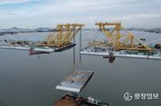 광장일보 주재영 기자 | 인천경제자유구역청은 12일, 해상 장대교량인 제3연륙교 상판이 하나로 연결 완료됐다고 밝혔다. 서해바다를 가로질러 중구 중산동과 서구 청라동을 잇는 제3연륙교의 마지막 상판을 서로 연결 함으로써 주탑과 함께 드디어 온전한 다리의 모습을 갖추게 됐다. 제3연륙교는 기존 인천대교와 영종대교를 보완하는 핵심 기반시설로, 인천경제자유구역과 서울의 접근성을 크게 향상시킬 것으로 기대된다. 제3연륙교 개통시 여의도에서 인천국제공항까지 약 30분 만에 이동이 가능해 지며, 이는 영종대교를 이용할 때보다 최대 20분가량 단축할 수 있다. 이날 공사는 다리 위 총 67개 상판 가운데 사장교 2개의 주탑 중앙에 위치한 길이 15m, 너비 33m, 무게 198t의 강재 상판을 최종 거치하는 것으로, 윤원석 인천경제자유구역청장과 관계 공무원 등이 지켜보는 가운데 성공적으로 마무리 됐다. 2021년 12월 착공한 제3연륙교 건설공사는 총 연장 4.681㎞, 폭 30m, 왕복 6차로 규모로 총사업비 7,800억원을 들여 건설 중이며, 주탑은 해수면에서 상부까지 184.2m에 달해 국내 강재 주탑