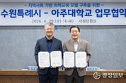 광장일보 주재영 기자 | 수원특례시와 아주대학교가 지역사회에 기반을 둔 새로운 의학교육 모델을 구축하고, 미래 지역 의료인 양성을 위해 힘을 모은다. 수원시와 아주대학교는 29일 시청 상황실에서 ‘지역사회 기반 의학교육 모델 구축을 위한 업무협약’을 체결하고 협력을 약속했다. 이날 협약식에는 이재준 수원특례시장, 최기주 아주대학교 총장, 4개 구 보건소장, 아주대학교 의과대학 학장 등이 참석했다. 협약에 따라 아주대학교 의과대학 5학년 학생들은 수원시 보건소에서 보건소별 특화교육을 이수하게 된다. 수원시는 예비 의료인들이 현장에서 시민의 삶을 마주하며 지역사회와 연계된 공공의료 체계를 입체적으로 경험할 수 있도록 교육 환경을 지원한다. 주요 협력 사항은 ▲지역사회 기반 의학교육 모델 공동 개발·운영 ▲보건소별 특화 교육 프로그램 개발, 현장 실습 지원 ▲지역사회 보건 발전을 위한 정보 공유, 인적 교류 등이다. 이재준 수원특례시장은 “이번 협약으로 예비 의사들이 시민과 가장 가까이 있는 보건소 현장에서 경험을 쌓게 된다”며 “현장에서 시민의 삶을 마주하는 경험은 의료의 본질과 가치를 되