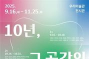 광장일보 주재영 기자 | 인천문화재단이 운영하는 우리미술관 2025년 10주년을 맞이하여, 9월 16일부터 11월 25일까지 '10년, 그 공간의 기억' 전시를 개최한다. 이번 전시는 총 3부로 구성됐으며 1부는 평면 회화 작품, 2부는 사진 및 미디어 작품, 3부는 입체 조형 작품 전시로 진행된다. 인천광역시 동구에 위치한 우리미술관은 지역 주민의 문화예술 향유 기회를 제공하기 위해 2015년 문화체육관광부와 한국문화예술위원회가 주관한 공모사업에 선정되어 개관했다. 현재까지 총 98회의 전시를 개최했으며 문화예술 향유 저변 확대를 위해 올해는 운영 공간을 확장하는 공사도 진행 중에 있다. 이번 전시는 그동안 우리미술관에서 전시했던 작가들의 작품을 선보인다. 10년간 우리미술관 전시에 참여했던 작가 41명의 작품을 3부에 걸쳐 전시한다. 1부(평면 회화)에서는 고제민, 구본아, 도지성, 류성환, 박진이, 오택관, 오현주, 윤종필, 이은정, 이진우, 이창구, 이환범, 장진, 정예지, 정평한, 최정숙 작가가, 2부(사진 및 미디어)에서는 권순학, 김순임, 김용현, 류재형, 박유미, 안우동, 유동현, 이지영, 임기웅, 장우진,