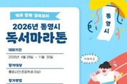 광장일보 주재영 기자 | 통영시립도서관은 지속적인 독서활동 권장을 통한 독서문화 저변 확대를 위해 오는 28일부터 11월 30일까지 '2026년 통영시 독서마라톤 대회'를 진행한다. 독서마라톤은 책 1쪽을 2m로 환산해 참가자가 책을 읽고, 독서기록일지를 작성해 사전에 설정한 코스에 따라 목표 독서량을 달성하는 범시민 독서 캠페인이다. 이번 활동은 ▲비진도(5km) ▲욕지도(10km) ▲장사도(21km) ▲소매물도(42.195km) 4개의 코스가 있으며, 소매물도 코스는 개인과 가족으로 나누어져 가족 모두가 협력해 코스를 완주할 수 있다. 또한 독서마라톤 연계 프로그램으로 경남독서한마당 선정도서를 읽고 독서기록 일지 작성 시 완주거리를 2배로 인정해주는 ▲JUMPING BOOK과 환경교육 선정도서를 읽고 감상문을 제출하면 ‘환경지킴이 인증서’와 함께 소정의 상품을 수여하는 ▲지구를 구하는 환경도서 읽기 등의 이벤트가 진행될 예정이다. 독서마라톤은 초등학생 이상 통영시립도서관 회원이면 누구나 참여 가능하며, 통영시립도서관 누리집'2026 통영시 독서마라톤 대회'페이지를 통해 대회 기간 동안 자유롭게